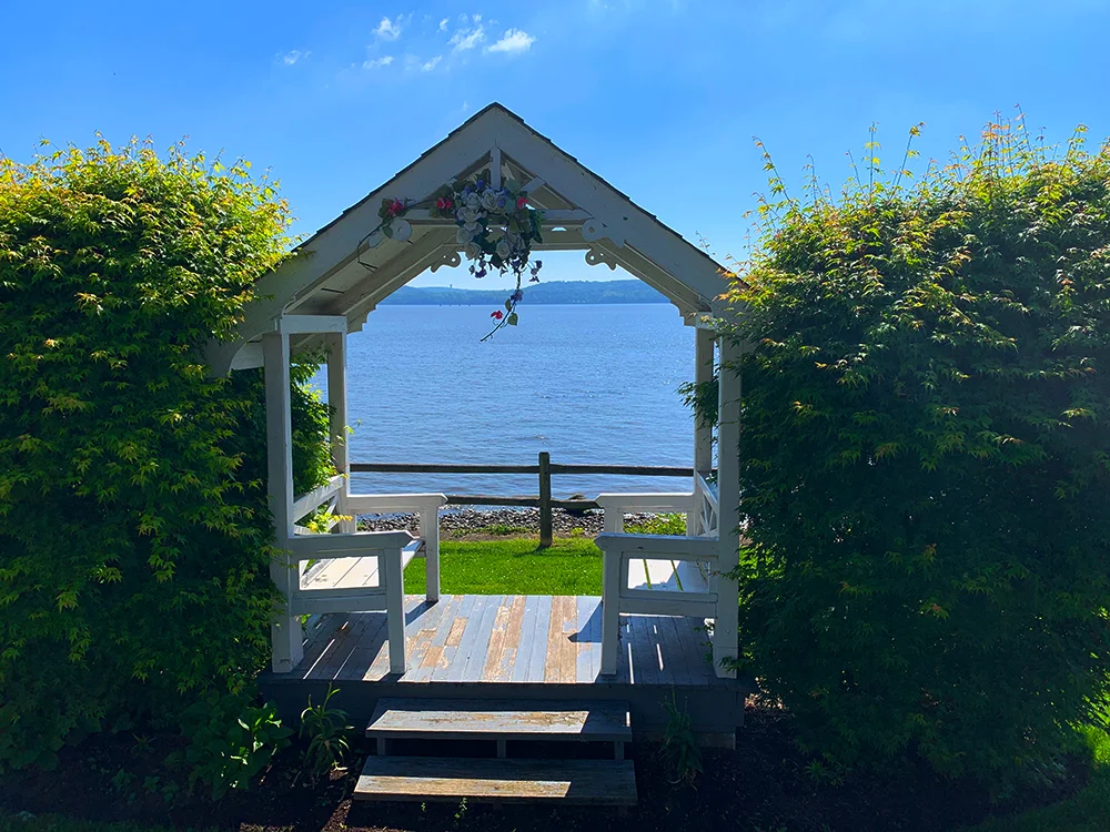 When you get to the church of St. John the Baptist, you've reached the town line, but you've also reached the highlight of this walk! The Church of St. John's is located on the Hudson River and the beautifully maintained grounds of the church are set down and off the street making for a perfect place to take pictures of the river, sit in one of the gazebos, pray, meditate, and just soak in the peaceful setting.